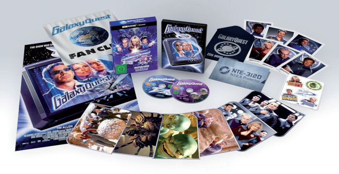 Jahre nach der Absetzung der TV-Serie „Galaxy Quest“ kämpfen die Stars der Show um ihre Karrieren. Als Außerirdische die Fernsehabenteuer mit „historischen Aufzeichnungen“ verwechseln, werden die Hauptdarsteller (u.a. Tim Allen, Sigourney Weaver) rekrutiert, um das Universum zu retten. Die 4K-Premiere der herrlichen Star-Trek-Persiflage erfolgt als limitierte Collector´s Edition (siehe Bild unten).