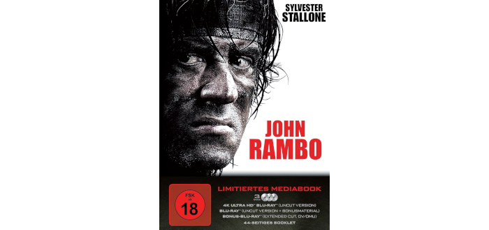 In seinem vierten und vorletzten Kinoeinsatz muss John Rambo (Sylvester Stallone) eine Gruppe Missionare aus einem Foltergefängnis in Birma befreien. Die einst indizierte Kriegs-Action ist mittlerweile ungeschnitten ab 18 Jahren freigegeben; die 4K-Premiere erfolgt im limitierten Mediabook.