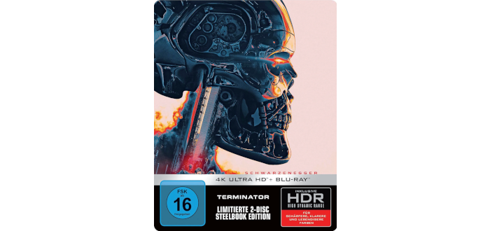 Im Gegensatz zu den 4K-Premieren der Cameron-Titel „True Lies“ und „The Abyss“ wurden für „Terminator“ keine neuen Extras produziert, auch portierte man nicht alle Goodies früherer Editionen; geblieben sind entfallene Szenen (9:59) und die Beiträge „Visuelle Effekte & Musik“ (12:58), „Näher an der Wirklichkeit“ (11:56) und „Das Erbe des Terminators“ (9:38). Nur auf der beiliegenden Blu-ray befindet sich „Terminator – Ein Rückblick“ (20:30)“.