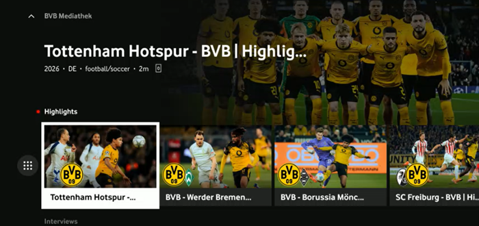 Vodafone stärkt das Entertainment-Angebot auf GigaTV und erweitert die Plattform um ein neues Highlight für Fußballfans: Ab sofort sind große Teile aus der aktuellen Bundesliga-Saison 2025/26 von ‚BVB-TV‘‘, dem Bewegtbild-Angebot von Borussia Dortmund, über die neue BVB-Mediathek auf GigaTV verfügbar. Damit bringt Vodafone exklusive schwarzgelbe Inhalte dorthin, wo Kunden sie am liebsten genießen: direkt auf den Fernseher oder in der GigaTV-App. Alle Inhalte der BVB-Mediathek sind einfach, kostenlos und rund um die Uhr abrufbar. Zum heutigen Start sind in der BVB-Mediathek bereits über 150 Sendungen verfügbar – viele weitere kommen in den nächsten Wochen und Monaten hinzu.