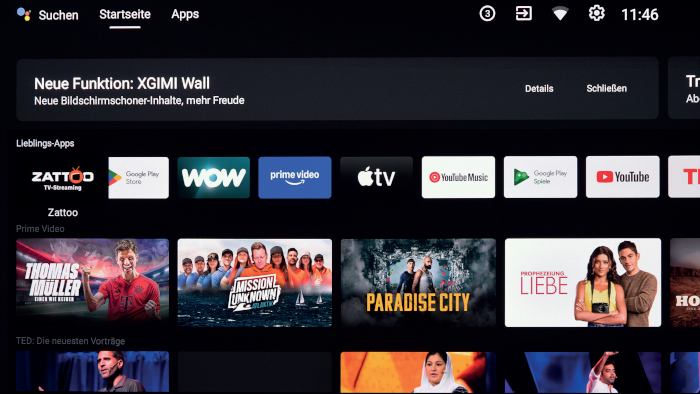 Das Betriebssystem Android-TV in Version 11 bietet eine umfangreiche Auswahl an Streamingdiensten wie Prime Video, Disney+, Apple TV und YouTube. Weitere Dienste sind im Google Play Store erhältlich, Netflix ist hingegen nicht kompatibel.