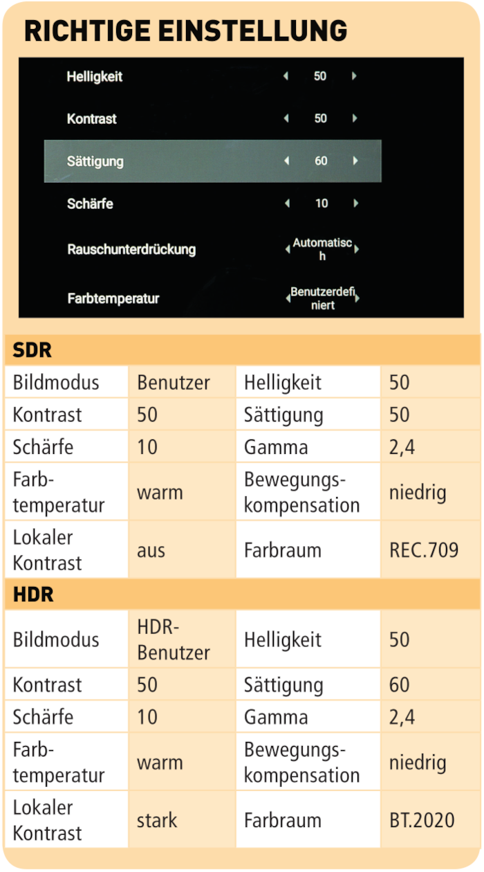 Ein leichter Grauschleier ist in Nachtaufnahmen zu verzeichnen. Dieser lichtet sich, sobald hellere und farbige Elemente zunehmen. HDTV-Inhalte werden mit natürlichen Farben messerscharf reproduziert. Die UHD-Blu-ray von „Elvis“ in Dolby Vision begeistert ob des riesigen Farbumfangs, Gleiches gilt für HDR10-Filme, denen das dynamische Tone-Mapping des Projektors zuteilwird. Wir erleben wiederholt echte HDR-Wow-Momente.